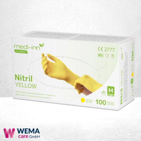 Die sehr gut hautverträglichen und strapazierfähigen Nitril Einmalhandschuhe von Medi-Inn sind zum Schutz vor pathogenen Keimen in der Medizin,